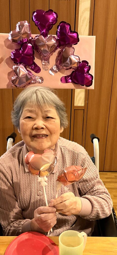 嬉しいニュースとして、さくら3丁目では介助で食事を召し上がっていた方が、ご本人の努力と職員の声かけによりご自分で口に入れることができるようになりました。「すごいことが起きました!」とユニットリーダーが目をウルウル、キラキラさせながら報告してくれました。バレンタインデーに限らず、生田広場の職員たちにはたくさんの愛があり、それがこの施設の強みです。これもまた、ご家族の日頃のご協力があってこそだと感じています。ありがとうございます。