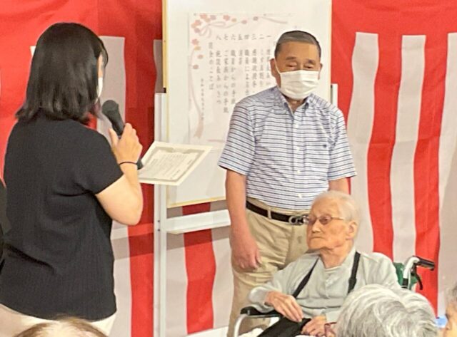 施設より、皆さまの長寿とご健康を祝し、記念品と感謝状をお渡ししました。