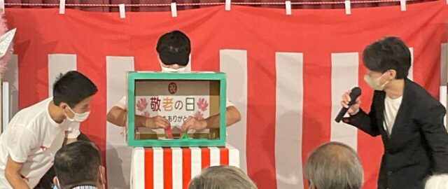 昨年まではユニットごとに趣向をこらしてお祝いをしてきましたが、今年は開設以来初めて、施設として敬老会を開催いたしました。私たちが想像もできないような苦労を重ねながら生き抜いてこられた皆さまに、私たちの感謝やお祝いの気持ちを伝えたいという強い思いから、試行錯誤を繰り返しながら企画書を完成させ、なんとか当日を迎えることができました。