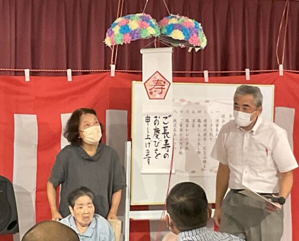 賀寿にあたる方と95歳以上の方にお集まりいただき、ご家族も招待してお祝いをしました。