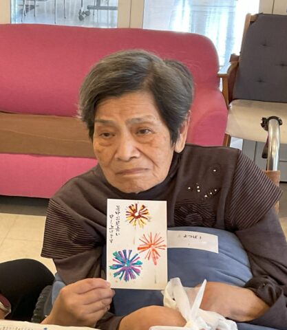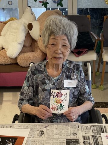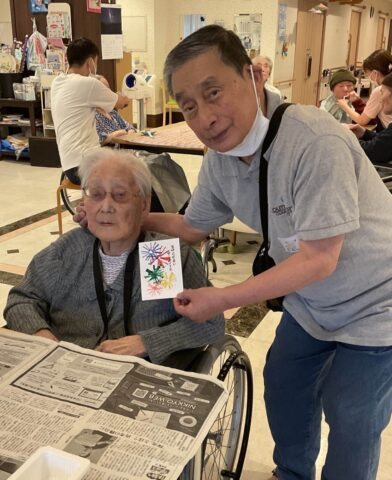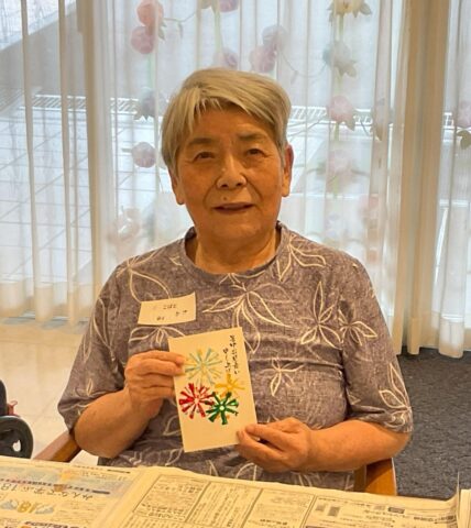 7月13日から4週に渡ってのレクでしたが、ご家族ボランティアの皆さんには居室から会場までの誘導や洗い物、はがき作りの声かけやお手伝いなどをお願いいたしました。多くの方のご協力のおかげでご利用者・職員ともに楽しい時間を過ごすことができました。どうもありがとうございました。