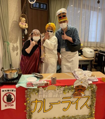 外の屋台では焼きそばやたこ焼きを作りました。職員の普段とは違う姿をみることができました。たこ焼きは人気があり、焼くのが間に合わなくなる事態も・・・。